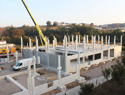 Ein Gebäude im Hinblick auf eine industrielle Werksfertigung hin zu konstruieren, erfordert bestimmte Prinzipien bei der Planung und statisch konstruktiven Ausarbeitung.