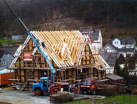 Holz ist als ältester Baustoff heute noch modern und in vielen Dingen den anderen Baustoffen mindestens gleichwertig. Die Haltbarkeit und Lebensdauer von Holzbauten ist bei richtiger Auswahl des Holzes und fachgerechter konstruktiver Ausbildung groß. Für Ihre individuellen Bauvorhaben erarbeiten wir Konstruktionslösungen.