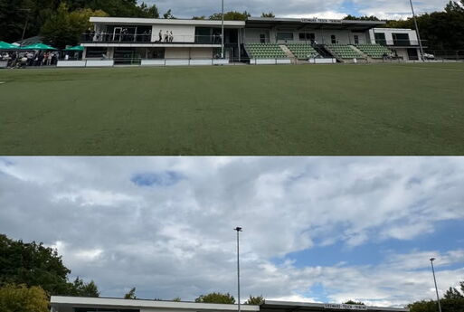 Die erweiterten Tribünenanlagen und neuen Vereinsräume des FV Wiehl 2000 e.V..